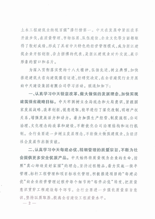 《浙江省住房和城乡建设厅关于在全省建筑行业开展向3003新葡的京建设集团有限公司学习活动的通知》